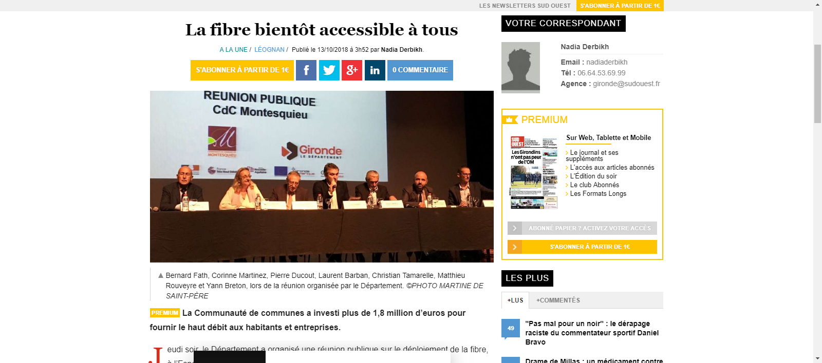 La question du calendrier de déploiement de la fibre optique a été traitée, le mardi 5 mars lors de la réunion publique tenue à Saint-André-De-Cubzac